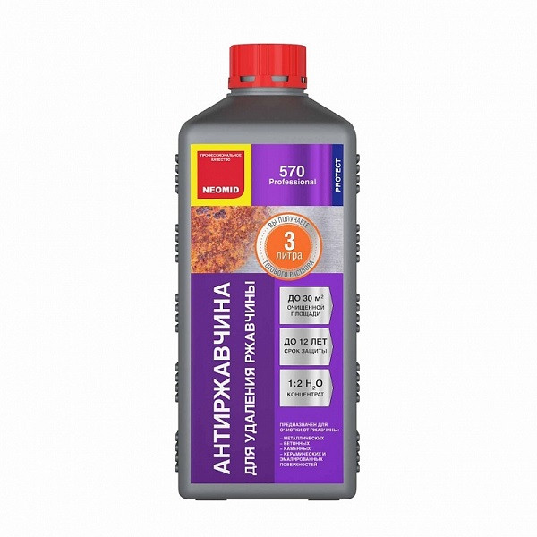 Предназначен для удаления ржавчины с металлических, бетонных, эмалированных и каменных поверхностей. Останавливает и предотвращает коррозионное разрушение. Может использоваться для подготовки поверхности металлов перед нанесением порошковых или жидких лакокрасочных покрытий. После применения препарата на поверхности металла образуется плотная защитная пленка из нерастворимых в воде комплексных соединений, обеспечивающая высокую защиту от коррозии на срок до 12 лет, при условии последующего покрытия основания соответствующим лакокрасочным составом. Средство повышает адгезию краски к оцинкованным и другим металлическим поверхностям.