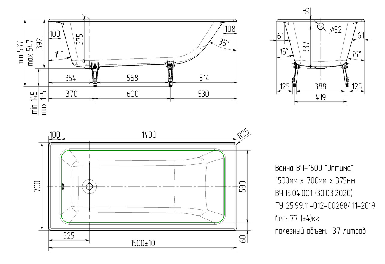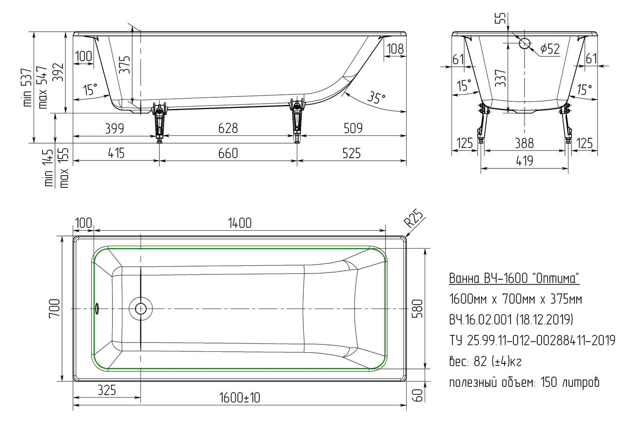 | Объем, л | 137, 150, 160 |