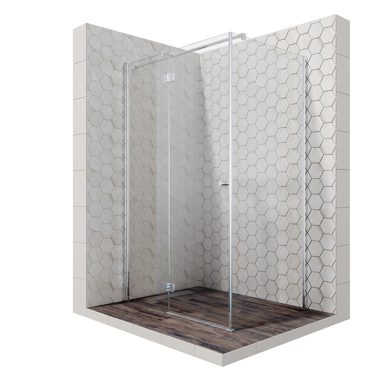 Прямоугольное душевое ограждение с распашной и складывающейся наружу и во внутрь дверью