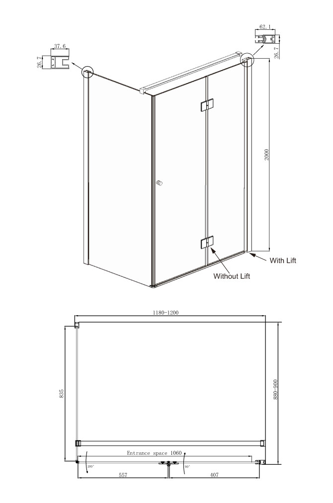 Все внутренние и наружные части комплектующих изготовлены в отделке SlimChrome+, придающей максимальную утонченность и блеск для сочетания со смесителем и душем. Уплотнители обеспечивают 100% герметичность изделия, благодаря плотному соединению стекольного полотна со всеми элементами душевого ограждения.