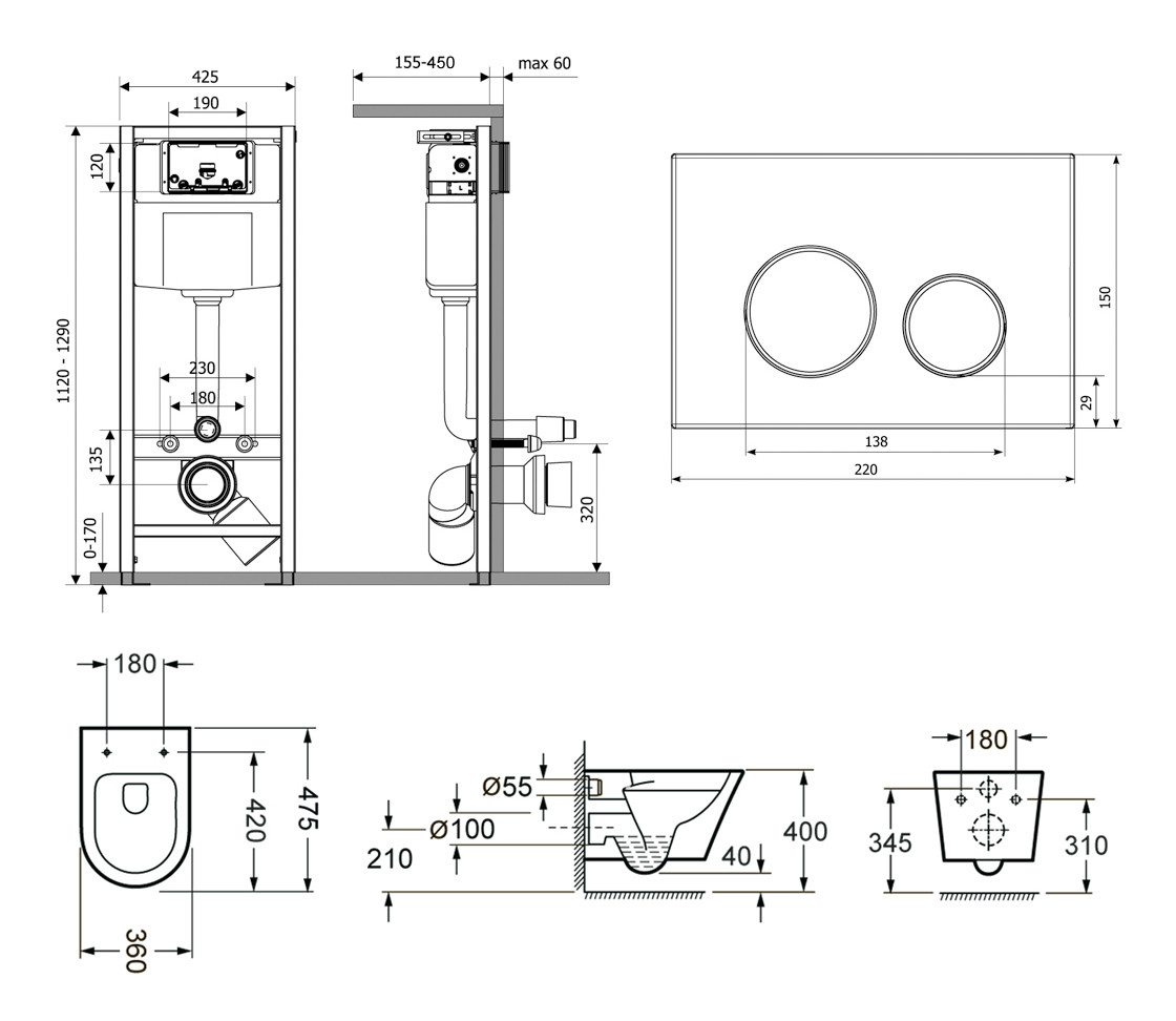 | Режим слива воды | двухрежимный, однорежимный, прерываемый (stop-функция), трёхрежимный |