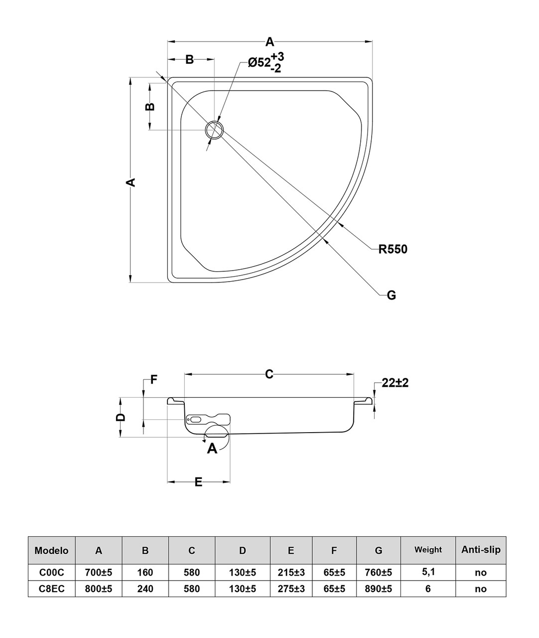 | Форма поддона | Полукруглая |